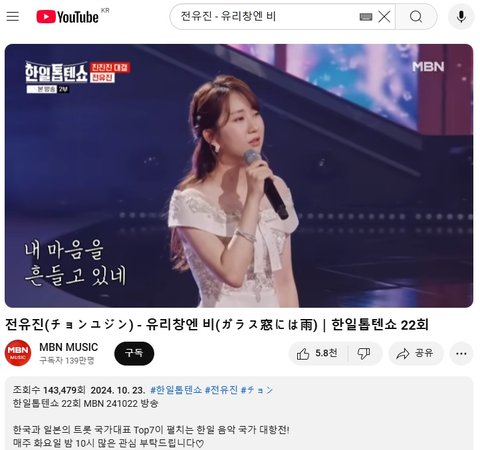 (사진7 설명) 전유진(チョンユジン) - 유리창엔 비(ガラス窓には雨)|한일톱텐쇼 22회