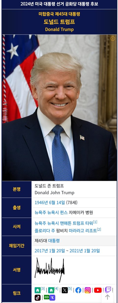 (사진8 설명) 도널드 트럼프(Donald Trump) 미합중국 제45대 대통령 <출처 : NAVER 나무위키>