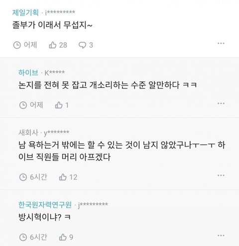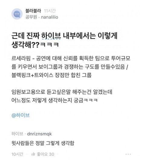 하이브 보고서에 대한 직원들 반응 ㅋㅋㅋㅋㅋ