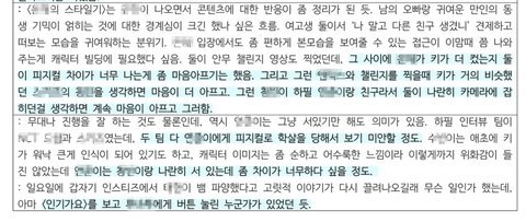 그 사이에 (은채)가 키가 더 컸는지 둘이 피지컬 차이가 너무 나는게 좀 마음아프기는 했음. 그리고 그런 (엔믹스)와 챌린지를 찍을때 키가 거의 비슷했던 (스키즈)의 (창빈)을 생각하면 마음이 더 아프고. 그런 (창빈)이 하필 (연준)이랑 친구라서 둘이 나란히 카메라에 잡 히던걸 생각하면 계속 마음이 아프고 그러함.