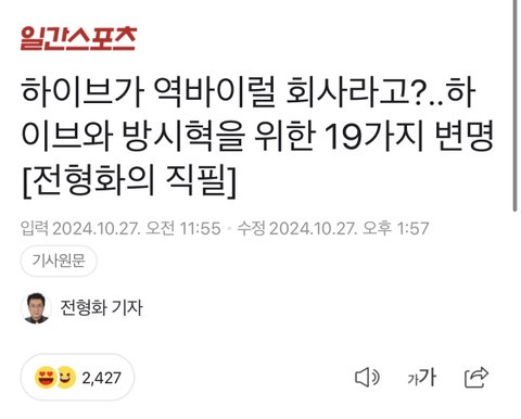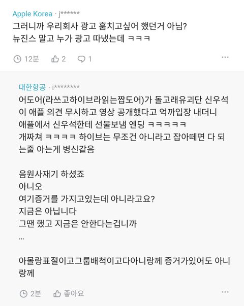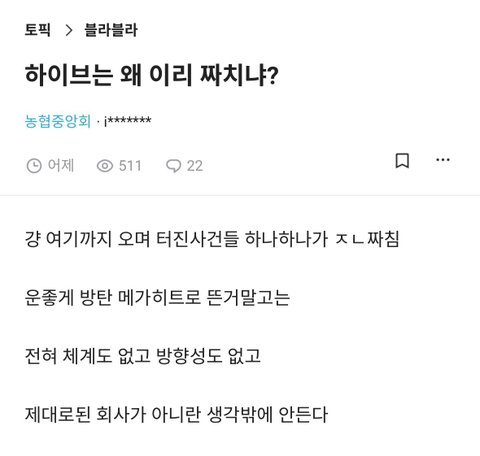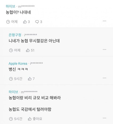 농협이 하이브보다 몇십배더 크고 연봉도2배인데 무시하네ㅋㅋ