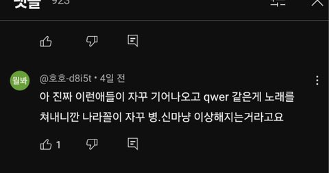 아직도 이런 악플을 쓰고 계시는분이계시네 본인이 수준 낮으신거 모르시나봐요? 왜 열심히하고있는 분들한테 방구석에서 이런 악플을 쓰시는건가요? QWER분들이 범죄를 저질렀나요 마약을 저질렀나요 아예없잖아요 당신한테 큰피해를 주기라도했나요? 게속피해를 준적없잖아요 그리고 나라꼴이 안좋게 흘러가는건 일똑바로 안하는 정치인들과 속좁고 툭하면부러워서 함부로 아무 잘못없는 분들한테 한심하게 악플이나 쓰는 당신같은 사람들때문이지 절대 QWER분들 때문이 아닙니다 댓글보니 본인이 폐미이신거 스스로 인정하시는 꼴입니다 왜 그분들하고 QWER분들을 같이 비교하시면서 욕하세요? 아예 그분들하고 QWER분들하고는 완전다릅니다 지금음지에 계신분들은 팬분들을 개돼지로보고 누가 피해를 보든상관없이 몰래 치밀하게 나쁜짓을하고 게속 그들만의 리그를 즐기고있지만 QWER분들은 그러지않고 항상 성실하고 꾸준히 연습을하고계시죠 거의 쉬시는날도 없이 열심히 바위게분들에게 행복하고 즐거운 음악을 들려주기위해서 많이 지치고힘들어도 열심히 연습하십니다 아예아무 잘못없고 바위게분들한테 좋은노래를 들려주기위해 열정 이넘치시고 열심히 하시는 QWER분들한테 무례하게 악플이라뇨? 정말 본인수준이 그것밖에안됩니까? 그리고 음지에 있는분들이 모두 그렇다는건아닙니다 안좋은 행동하시는분 들이 많아서 그렇게 얘기했습니다