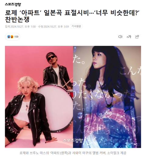 뭔 듣보 일본노래를 표절했다는 관련기사