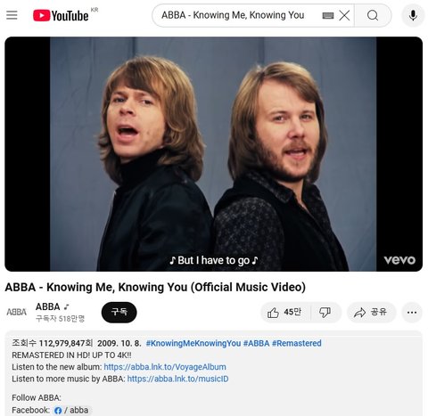 (사진2 설명) ABBA - Knowing Me, Knowing You (Official Music Video)