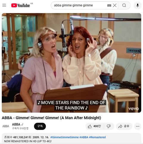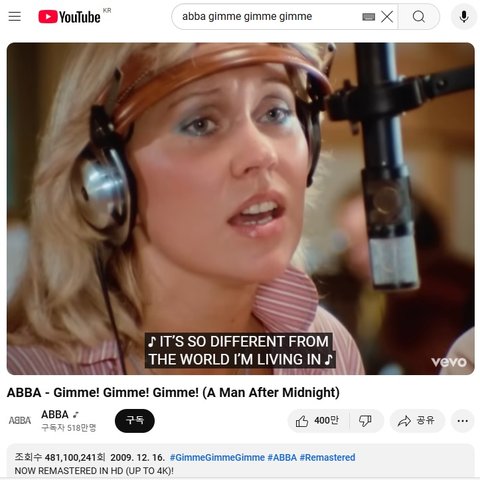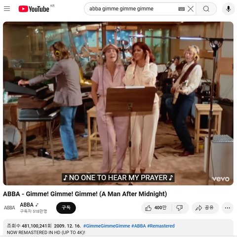 (사진3~6 설명) ABBA - Gimme! Gimme! Gimme! (A Man After Midnight)