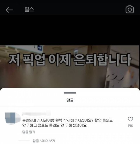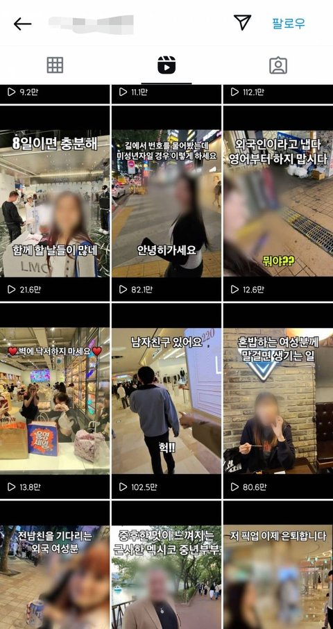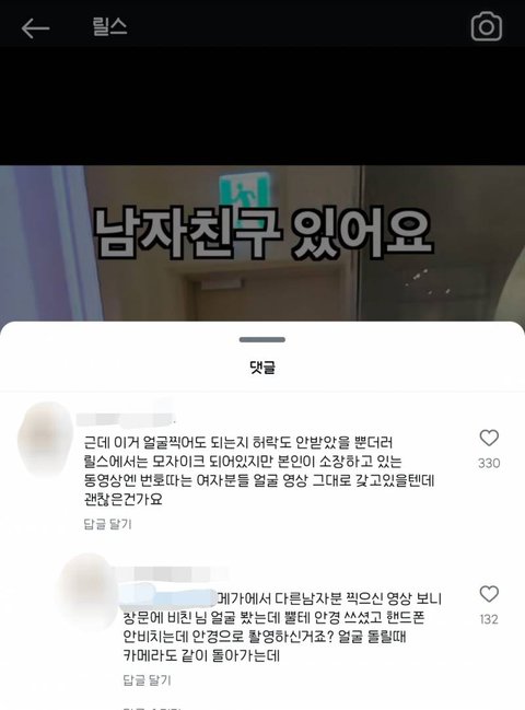 (이 영상으로 논란되니까 영상삭제+원래는 계정에 있는 릴스 전부 여성분들 얼굴에 모자이크 없었는데 전체 모자이크 처리함 모자이크 없었을 때 댓글에 한남들이 성희롱, 얼평질 오지게 했는데 계정주가 댓글 삭제함)