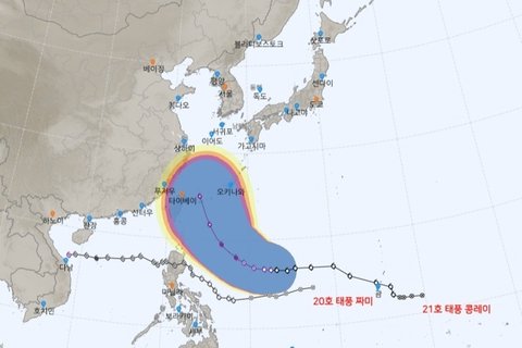 내일(29일) 오후에는 필리핀 마닐라 북동쪽 약 730㎞ 부근 해상에 다다르고, 다음 달 1일에는 타이완(대만) 타이베이 남남서쪽 약 160㎞ 부근 육상에 진입할 것으로 보입니다.