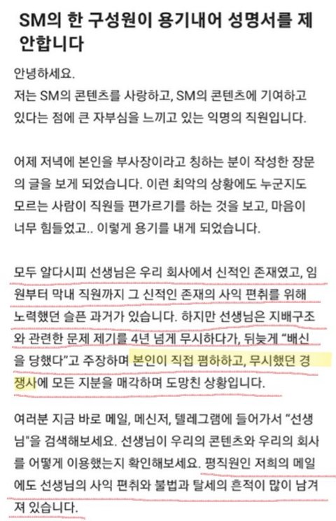 소송전때 sm직원이 이ㅅㅁ 폭로했던거에 직접 펌하하고 무시했던 경쟁사라고 언급됐던데 얘네는 그때 조용했던게 개웃김 슴직원조차 그걸 느낀건데