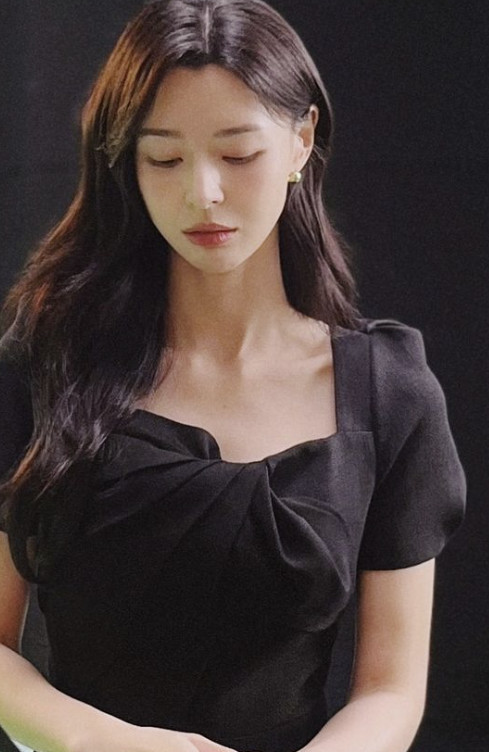사진 속 권나라는 슬림 블랙 드레스를 입고 고급스러운 분위기를 자아내고 있다.