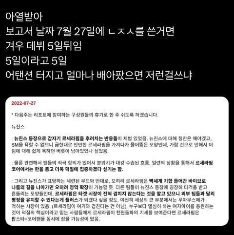 뉴진스는 하이브였던적이 없네 데뷔 5일만에 저런 보고서? ㅋㅋㅋㅋㅋㅋ