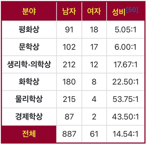 내가 틀린 말 한 것도 아니고 노벨상 성별 편파적인 거 맞는데