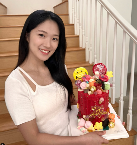 사진 속 김혜윤은 흰색 티셔츠를 입은 채 긴 생머리를 늘어뜨리고 환히 웃는 모습. 김혜윤은 두 손으로 커다란 케이크를 들고 보조개가 돋보이는 미소로 시선을 사로잡았다. 특유의 상큼한 미모가 감탄을 자아낸다.