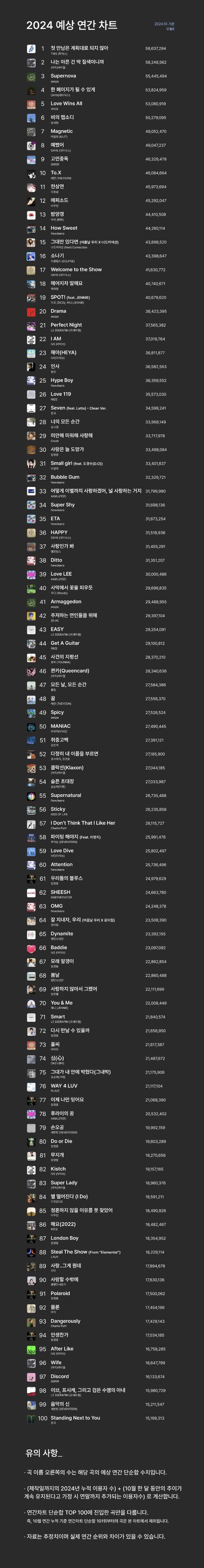 2024년 멜론 연간차트 예상 순위