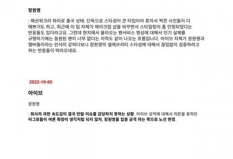갤에서 작업하던 커뮤 역바이럴 내용들을 커뮤동향이랍시고 분석함