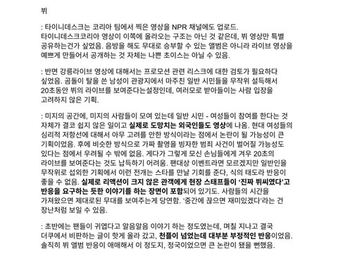 오늘자 방탄 콘서트에서 뷔 얼굴