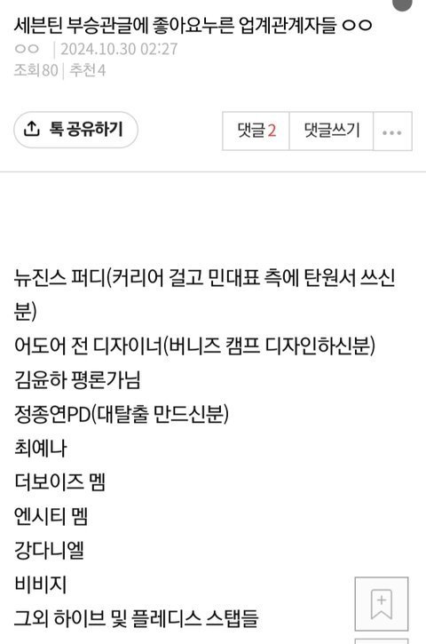 뉴진스스탭분들이 그 속보이는 글에 좋아요를 눌러줬을까?ㅠㅠ