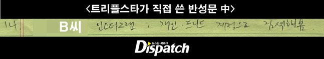 B 씨는 '디스패치'에 자신의 인터뷰를 사용하지 말라고 부탁했다. 더 이상 과거 일로 엮이고 싶지 않다는 것. 대신, 자신의 입장문을 전달했다.