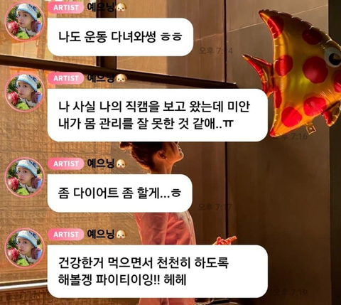 팬들은 살쪄서 오히려 좋다고 해도 어쨌든 스스로 살 쪘다는 걸 크게 인지 못 하던 상황이었는데 자꾸 살 살 거리니까 나 진짜 살쪘구나 하면서 '더 보기 좋다, 더 예쁘다'는 말은 잘 안 보이는 듯