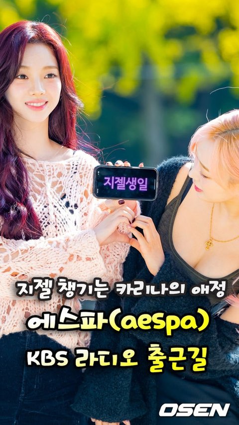 에스파의 카리나와 지젤이 출근길에 취재진을 향해 포즈를 취하고 있다. 2024.10.30 / ksl0919@osen.co.kr