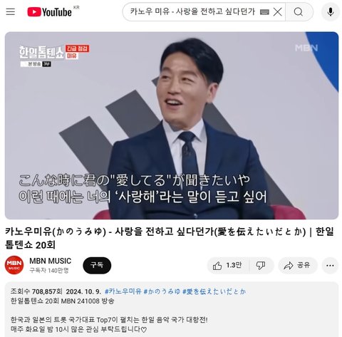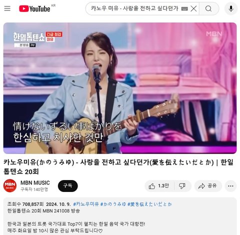 (사진2~3 설명) 카노우미유(かのうみゆ) - 사랑을 전하고 싶다던가(愛を伝えたいだとか)|한일톱텐쇼 20회