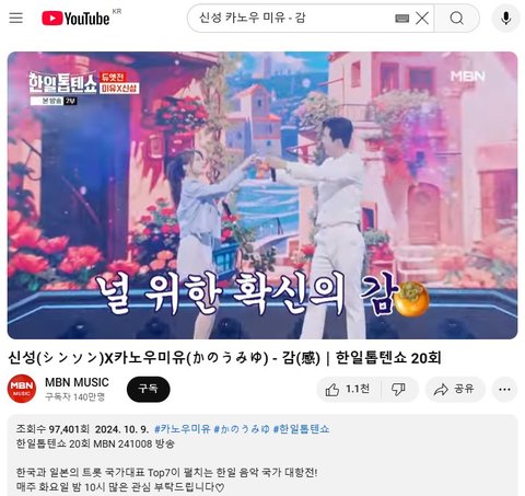 (사진5 설명) 신성(シンソン)X카노우미유(かのうみゆ) - 감(感)|한일톱텐쇼 20회