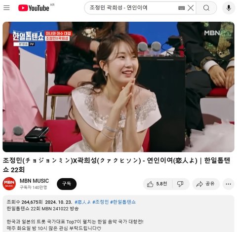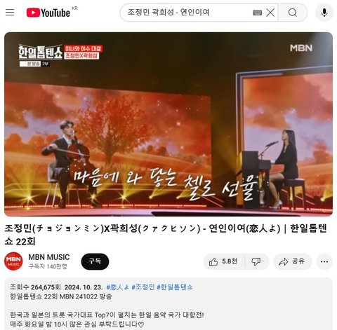 (사진6~7 설명) 조정민(チョジョンミン)X곽희성(クァクヒソン) - 연인이여(恋人よ)|한일톱텐쇼 22회