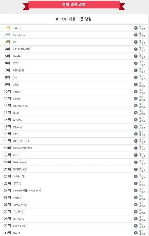 2024년 일본 10대 남녀가 투표한 가장 좋아하는 케이팝 여성그룹 순위