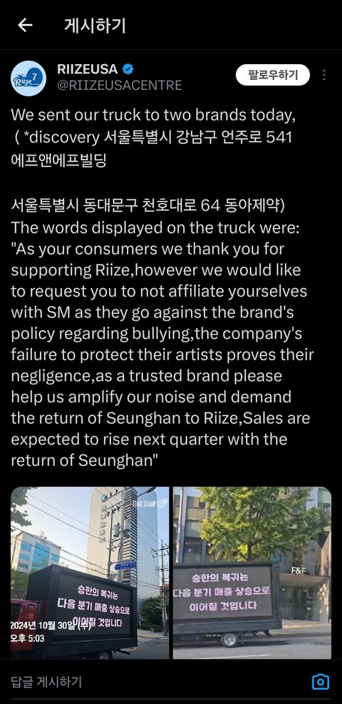 트럭을 광고주에 보내는건 말리는 외국팬들도있었는데 그래서 날짜예고없이 몰래 보냄 그러니까 업보빔맞지 ㅋㅋㅋㅋ