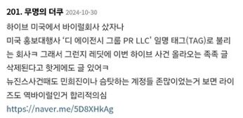 슴퀴들 요즘 지들악개싸움 매우 간단하게 하이브탓으로 돌리는데 그럼 악개들은 신나서 마음껏 까고 하이브 뒤에 숨을수 있음 정신차려