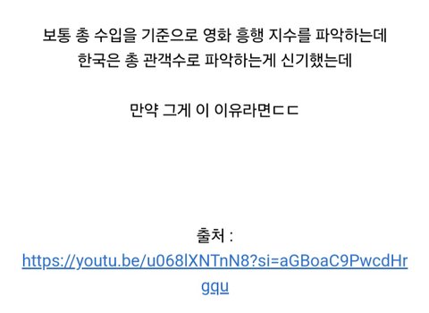 한사람당 4천원이지만 최근 천만영화 파묘로 따져보면 관객수 1,191만명인데 일인당 4천원 하면 47,640,000,000임....영화한변에 470억이 어디론가 사라짐 도대체 어디로 간거냐