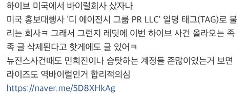 방금 올라온건데 이 계정 하이브쪽에서 역바돌린 거 맞는듯