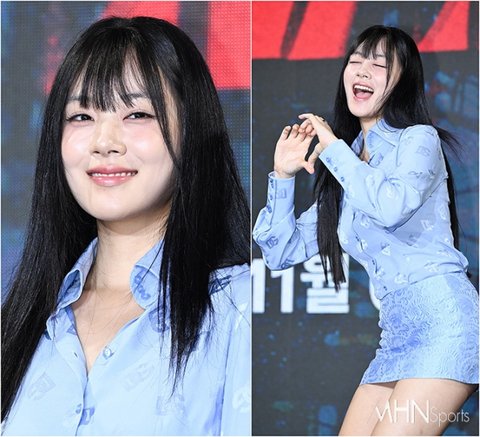 이날 김형서는 하늘색 한 뼘 미니스커트와 블라우스에 롱부츠를 매치한 청량 섹시 룩으로 등장했다.