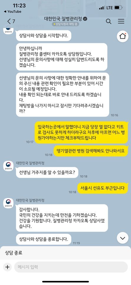 난 너무 무서워서 바로 한국 돌아와 질병청에 바로 연락함