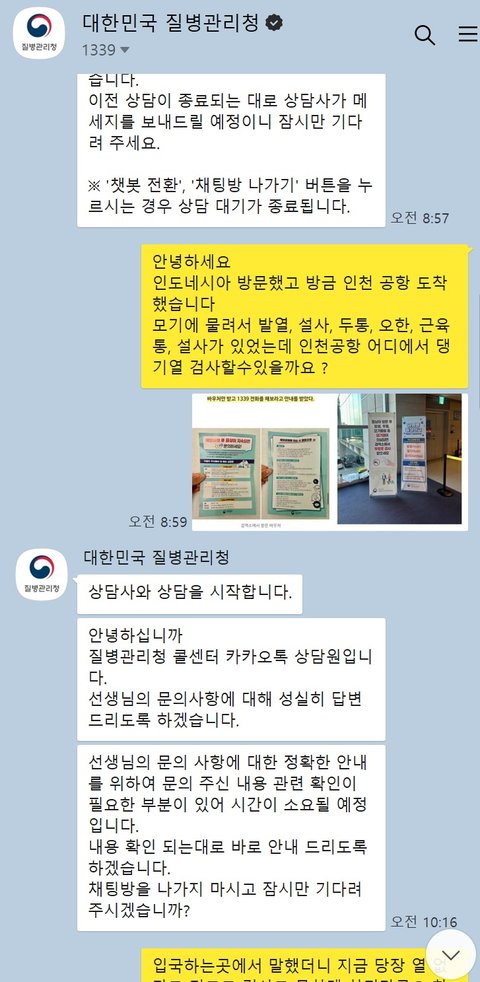 뎅기열 관련 병원 알려달라고했더니 그냥 상담 종료함