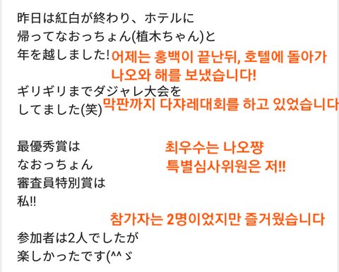 사쿠라 "작년엔 혼자였어요 나오랑 둘이 있었는데 나오가 새 해 카운트다운 10초전에 나갔어요"