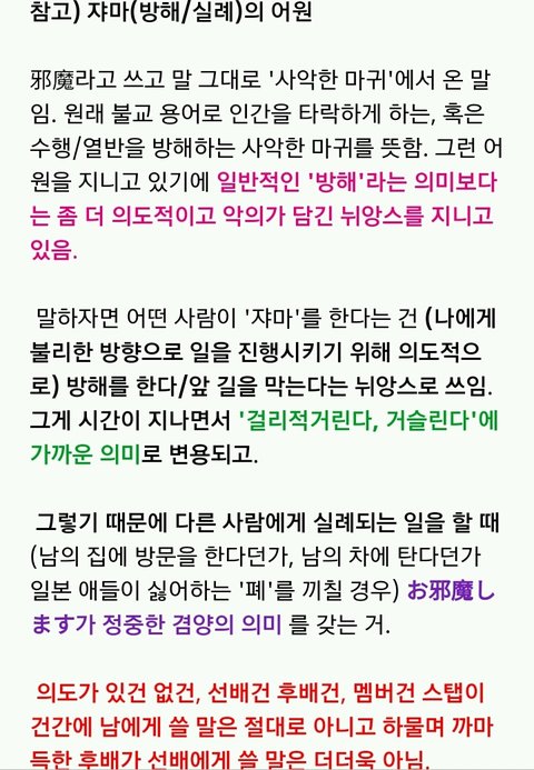 쟈마라는 단어 들은 옆 사람 표정