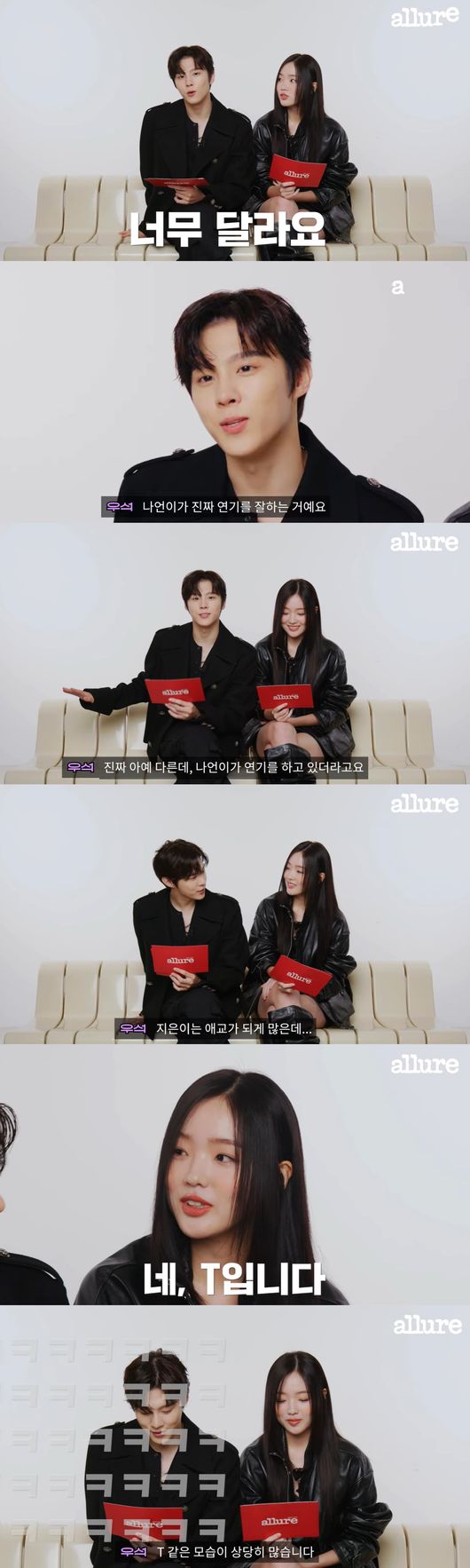 드라마 속 캐릭터의 MBTI 얘기를 나눈 뒤, 진짜 모습과 얼마나 차이가 있는지 물었다. 강나언은 "난 지은이랑 좀 다른 것 같다"고 답했고, 김우석은 "너무 다르다. 나언이가 진짜 연기를 잘하는 것"이라고 강조했다.