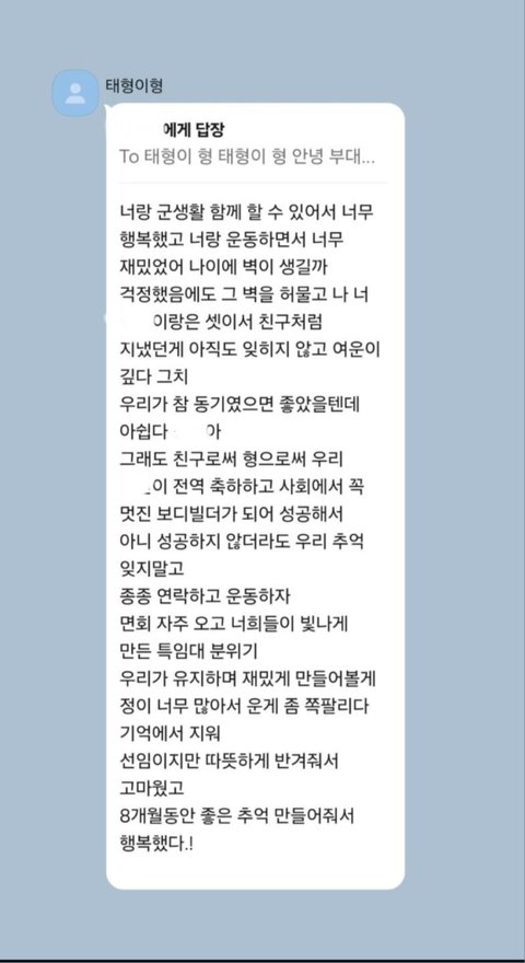 먼저 전역한 특임대 선임이 방탄소년단 뷔에게 남긴 글 (+다른 선임분글 추가)
