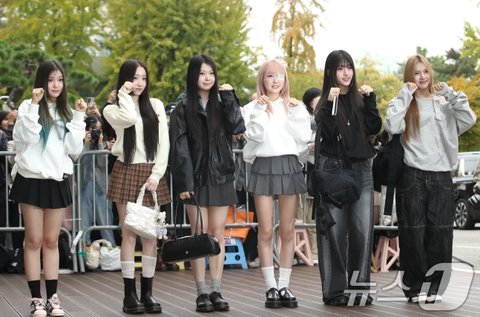 권현진 기자(rnjs337@news1.kr)(서울=뉴스1) 권현진 기자 = 세이마이네임 승주(왼쪽부터)와 메이, 도희, 히토미, 준휘, 카니가 음악방송 '뮤직뱅크'(뮤뱅) 녹화를 위해 1일 오전 서울 영등포구 KBS 신관 공개홀에 도착해 인사를 하고 있다. 2024.11.1/뉴스1