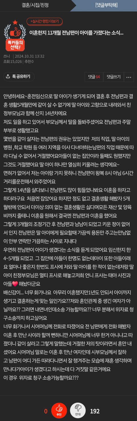 [원본지킴이] 이혼한지 11개월 전남편이 아이를 가졌다는 소식...