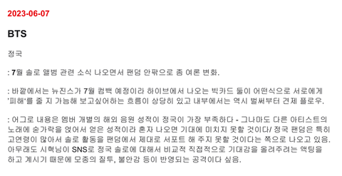 이때 비슷한 시기에 방탄으로 타 레이블 견제한다는 말 있었는데오늘 공개된 문건으로 팩트로 확인됨