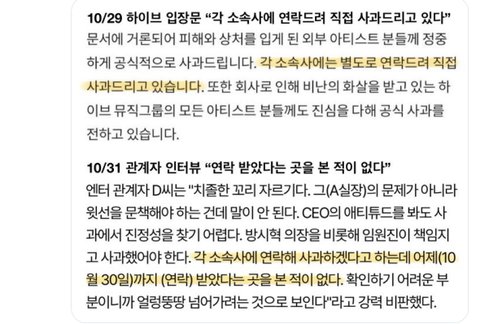 피해아티스트 소속사한테 사과는 언제하신대?