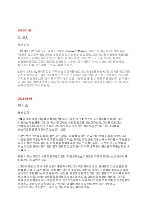 비비지 컴백 당장 일주일도 안 남았고 여자친구 컴백도 있어서 즐겨야 할 시기에 자꾸 부스럼을 만드네