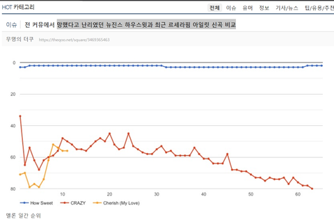 지금 다시 60위권인데 딱 최고 순위 콕 찝어서 '치솟았다'