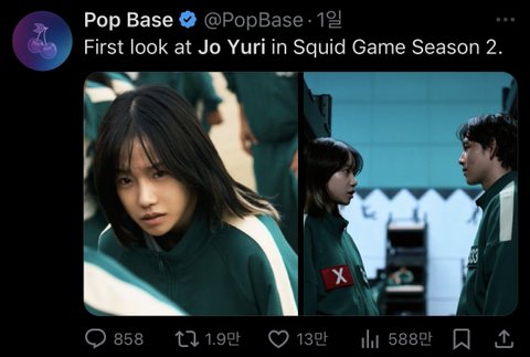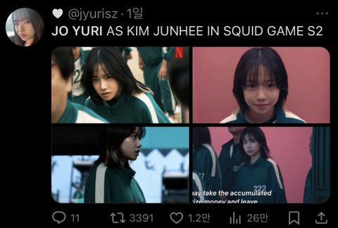 그리고 넷플릭스 글로벌 공계에 오겜 관련 트윗 딱 세개 올라왔는데 그 중 하나에 조유리 있는거나 오겜 인스타 공계 고정피드에 있는거 보니까 푸쉬 해주는 캐릭터로 보임