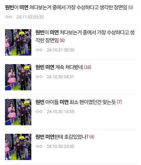 저번 뮤뱅 마드리드에서 스크린에 닝닝 나오니까 원빈이 스크린 슬쩍 보고, 성찬도 스크린 보다가 원빈쪽 쳐다봄