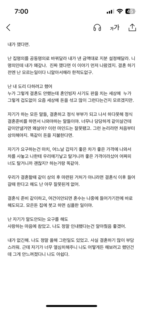 여친도 원래라면 결혼식 이후 그래야되는데 자기가 백번 양보해서 상견례이후부터 보태주겠다고 하네요