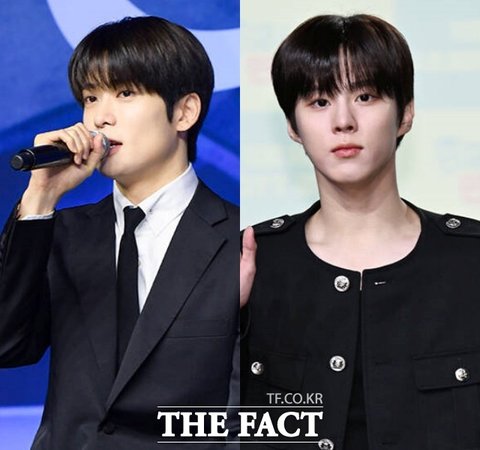그룹 NCT 재현(왼쪽)과 가수 겸 배우 김우석이 4일 육군 군악대 현역으로 입대한다. /더팩트 DB