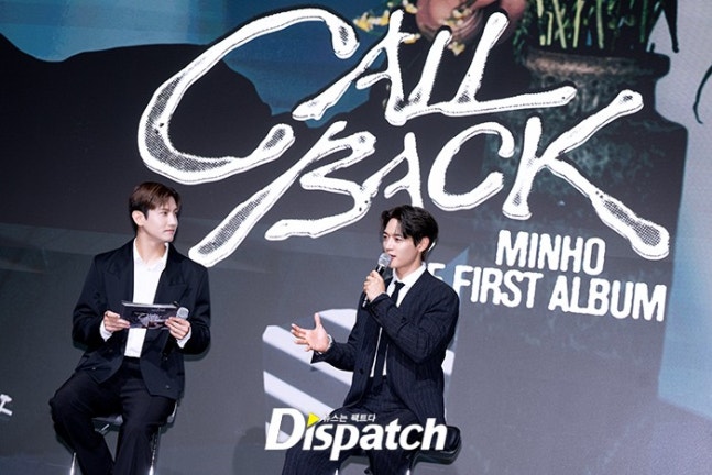 민호가 4일 서울 영등포구 페어몬트 앰배서더 서울 그랜드볼룸에서 첫 정규 앨범 ‘콜 백'(CALL BACK) 발매 기념 기자간담회를 열었다. 최강창민이 MC로 함께 자리했다.