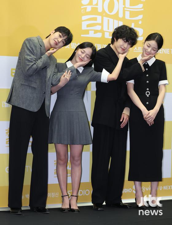 4일 오후 서울 마포구 상암동 스탠포드 호텔에서 ENA 월화 드라마 '취하는 로맨스' 제작발표회가 열렸다. 박선호 연출, 배우 김세정, 이종원, 신도현, 백성철이 참석했다. 박세완 엔터뉴스팀 기자 park.sewan@jtbc.co.kr (콘텐트비즈니스본부)'츤데레' 지상주류 본사 기획팀 과장 방아름 역의 신도현과 '장난기 넘치는 막내' 토스트 트럭과 함께 전국을 유랑하던 오찬휘 역을 소화할 백성철의 로맨스 호흡도 기대감을 높이고 있다. 김세정, 이종원 커플과는 다른 매력을 보여줄 예정이다.